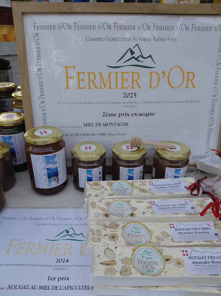Notre Miel de montagne a été primé "2ème prix Ex-aequo du Concours des Fermiers d’Or 2025 Auvergne Rhône Alpes". Nous sommes heureux de vous faire déguster ce miel issus du terroir des Aravis.